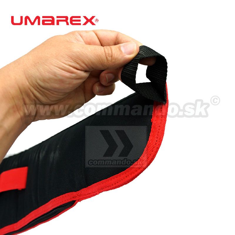 Univerzálne Umarex čierno - červené prepravné puzdro na dlhé zbrane s celkovou dĺžkou do 123 cm. Puzdro Red Line "L". Vhodné pre vzduchovky do dĺžky 123 cm a rôzne iné zbrane do tejto dĺžky. Výška puzdra je 24cm. Puzdro sa dá niesť v jednej ruke, alebo cez plece. Na užšom konci je nylonový výčnelok umožnujúci zavesenie vertikálne napr. na stenu na nejaký kolík, vešiak. Vnútro je vypolstrované. Tri rôzne bočné kapsy sa uzatvárajú na zips. Jedna kapsa je priehľadná napr. na nejaké viditeľné dokumenty. Na puzdre nemôže chýbať pekná výšivka s logom so značkou Umarex. Celé puzdro je vyrobené z odolného polyesteru.