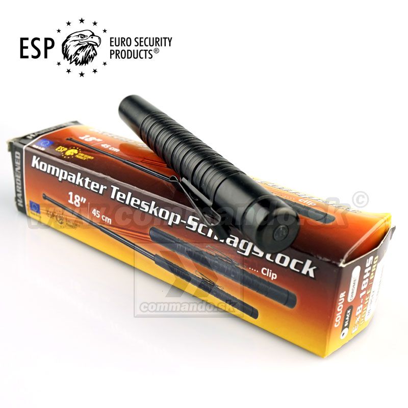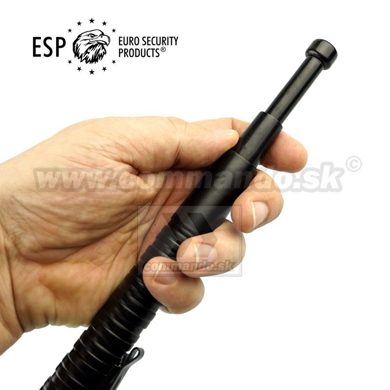 Teleskopický obušok z kalenej ocele, produkt renomovanej firmy ESP - Euro Security Products® - svetový výrobca produktov určených k sebaobrane ako aj potrieb bezpečnostných a ozbrojených zložiek. Kovový klip je odoberateľný v prípade potreby.