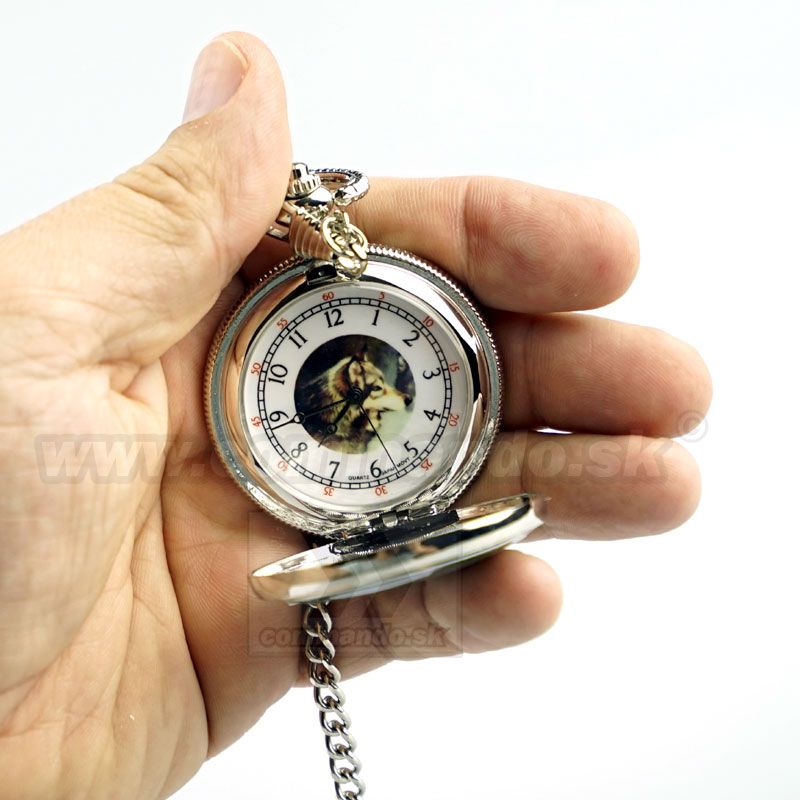Vreckové hodinky s retiazkou - WOLFS 2 - funkčné vreckové hodinky so starožitným výzorom a s retiazkou. Vhodné pre každodenné nosenie s puncom nostalgie. Efektný darček pre skôr narodených, avšak dnes je moderné nosiť všetko čo sa páči a čo je staré.