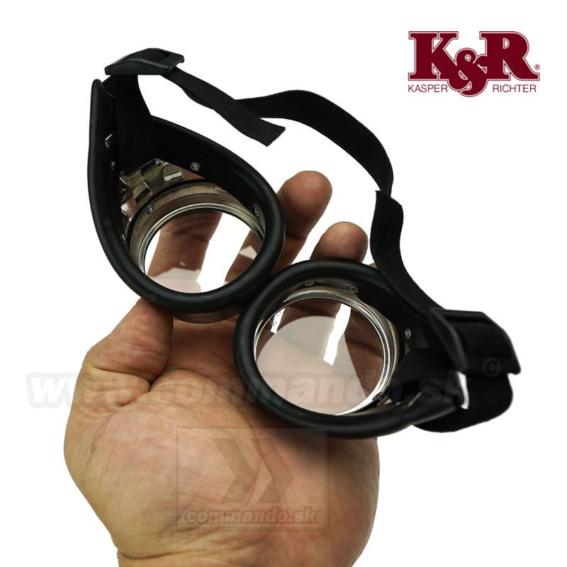 Kasper & Richter okuliare Ring G - špecialitka pre dobrodruhov, veteránov a motorkárov. Retro kulirae s odvetraním po bokoch. Sklá sú číre.