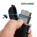 EXPLORER outdor plynový zapaľovač vodeodolný v čiernej farbe. Zapaľovač typu JET Lighter, je vložený do gumevého púzdra. Telo zapaľovača má tesniace krúžky, ktoré bránia vniknutiu vlhkosti do zapaľovača. Telo zapaľovača má očko na prevlečenie šnúrky, prívesku alebo karabínky.